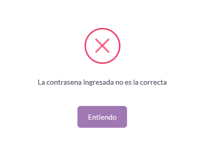 Contraseña incorrecta Ocurre cuando la contraseña ingresada no es la correcta. En este caso te recomendamos verificar que no tengas las mayúsculas encendidas, recuerda que la contraseña solicitada es de al menos 13 dígitos, por otro lado, evita copiar y pegar tu contraseña en la casilla correspondiente.