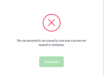 Correo no registrado Ocurre cuando el correo electrónico ingresado no está registrado en nuestro sistema. En este caso te recomendamos verificar que tu correo esté bien ingresado y que no tengas las mayúsculas encendidas, por otro lado, evita copiar y pegar tu correo en la casilla correspondiente.