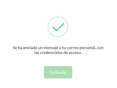 Este botón te permite solicitar tus credenciales de acceso al sistema de voluntariado, una vez presionado, verificará si el correo electrónico ingresado en la casilla del formulario existe en nuestro sistema, de ser así, te llegará un mensaje a tu bandeja de entrada con las credenciales de acceso. A continuación te mostraremos las posibles situaciones que podrías experimentar al intentar recuperar tu contraseña: