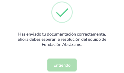 Documento válido Ocurre cuando el documento cargado fue subido correctamente al sistema de voluntariado, debes recordar que el documento no se ha enviado al equipo de la fundación, para ello debes subir la totalidad de los documentos y presionar el botón el cual se encuentra en la parte inferior de la pantalla.