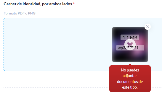 La solución para este caso es volver a cargar/subir el/los documento(s) en un formato válido, prestando atención en cuáles son estos formatos y que documento es el involucrado, el sistema siempre indicara esta información en el mismo formulario.
