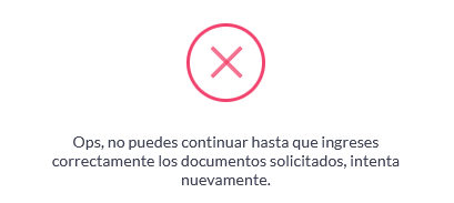 Documento obligatorio no cargado Ocurre cuando uno de los documentos definidos como obligatorios, no ha sido cargado de manera correcta.