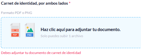 Si al hacer clic en la casilla no ocurre nada y no puedes seleccionar tu documento desde tu ordenador, es muy probable que tengas bloqueada las ventanas emergentes en tu navegador. Para solucionar esta situación, desde tu navegador Chrome, dirígete al siguiente enlace, si tu navegador es Firefox, dirígete al siguiente enlace. Finalmente, siempre recomendamos utilizar navegadores populares (Chrome, Firefox, Safari, Opera y Edge) y en su última versión, esto es fundamental para el correcto funcionamiento del sistema.